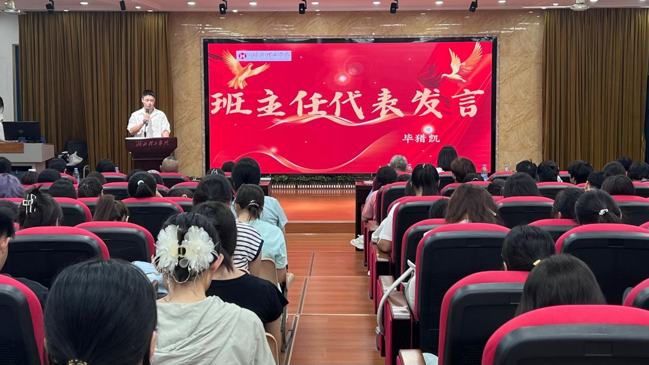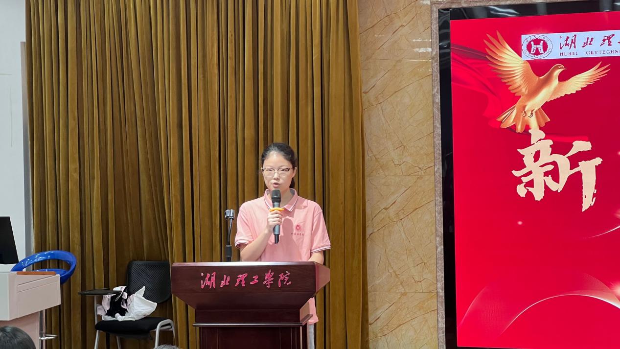 公司教师代表阮桢,作为湖北省青教赛一等奖的获得者,以“走出舒适圈”作为勉励,搭配上流利英语展现的深厚专业素养,为新生们树立了榜样。班主任代表毕猎凯博士深情寄语,鼓励同学们要把握当下,珍视大学时光,善用资源、努力成长,莫负韶华。