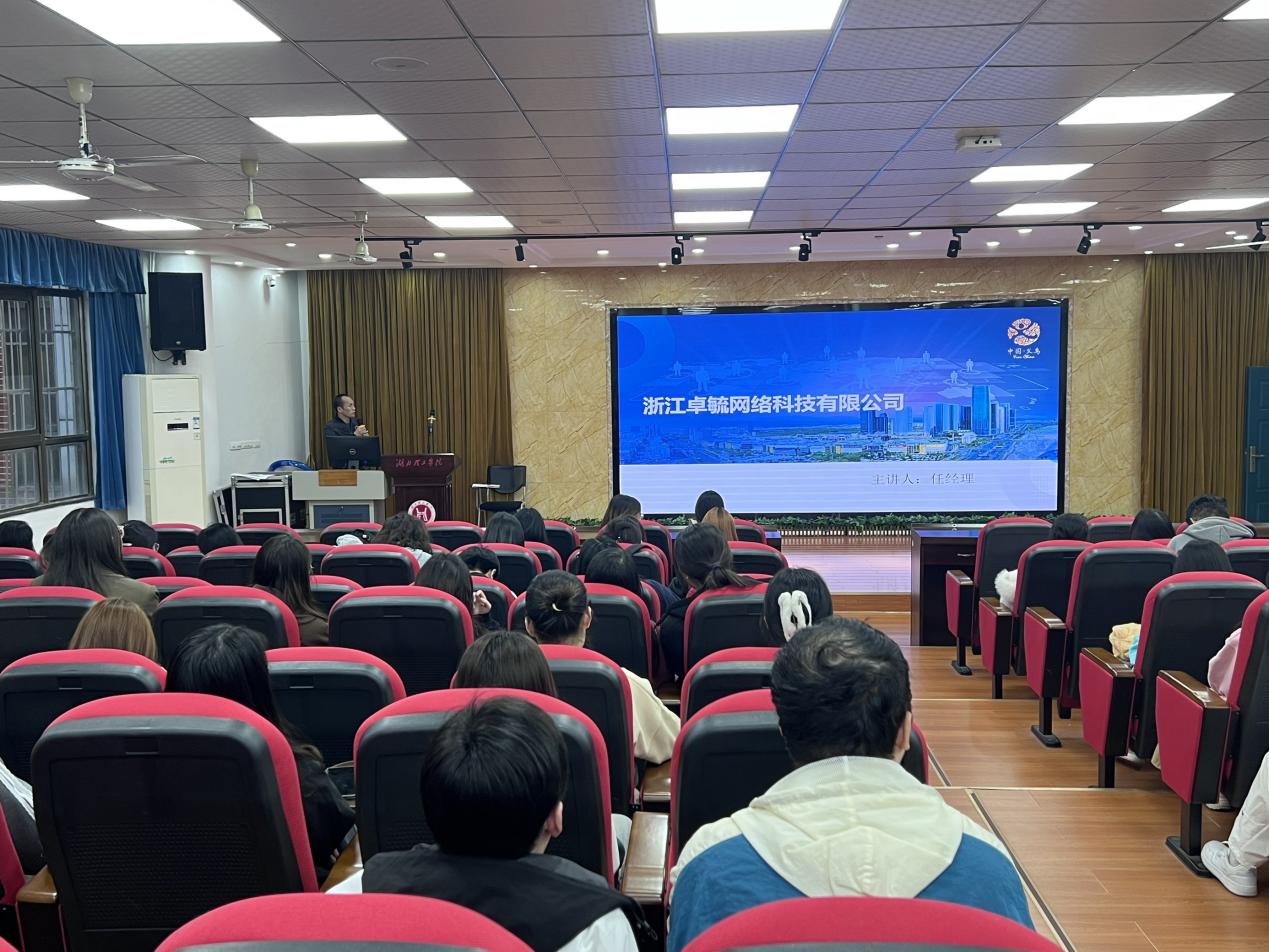 浙江卓毓网络科技有限公司总经理任武解读了义乌老员工实习和就业补贴等政策,为商务英语专业的毕业生带来了涵盖外贸业务员、跨境电商运营助理、跨境直播助理及外贸跟单员等四大类共90个岗位,精准对接了同学们的专业所学与职业兴趣。