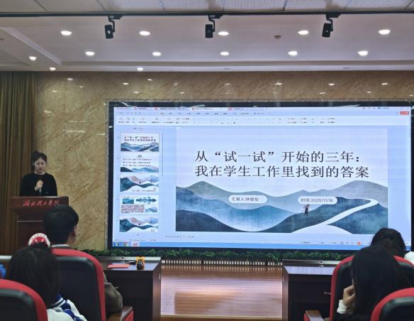员工干部代表钟蔚怡通过展示自己三年的工作历程,让同学们看到了她近几年来的成长与收获,同时,也让我们看到了一名优秀员工干部的责任与担当。刘彩丹从心理健康工作者视角出发,讲述帮助就业焦虑的同学走出阴霾、自己也在服务中治愈焦虑的双向成长故事,让大家感受到助人与自助的温暖力量。