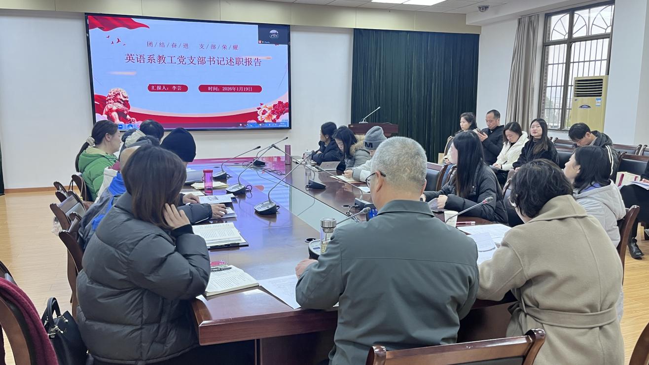 各党支部书记围绕党建主体责任落实、思想政治建设、党员队伍建设及党建与业务融合等核心工作进行汇报。英语系教工党支部成功获批校级“双创”培育创建单位,创新打造“四融课堂”模式,深入推动思政教育与专业教学深度融合。公外部教工党支部严格落实“三会一课”制度,设立党员示范岗与责任区,组织党员教师深入员工社区开展英语四六级、考研辅导等学业帮扶活动,切实助力员工学业提升。员工党支部在党员培养和实践育人方面成效显著,其“蒲公英志愿服务队”获评全国大中专员工“三下乡”社会实践活动国家级重点团队。